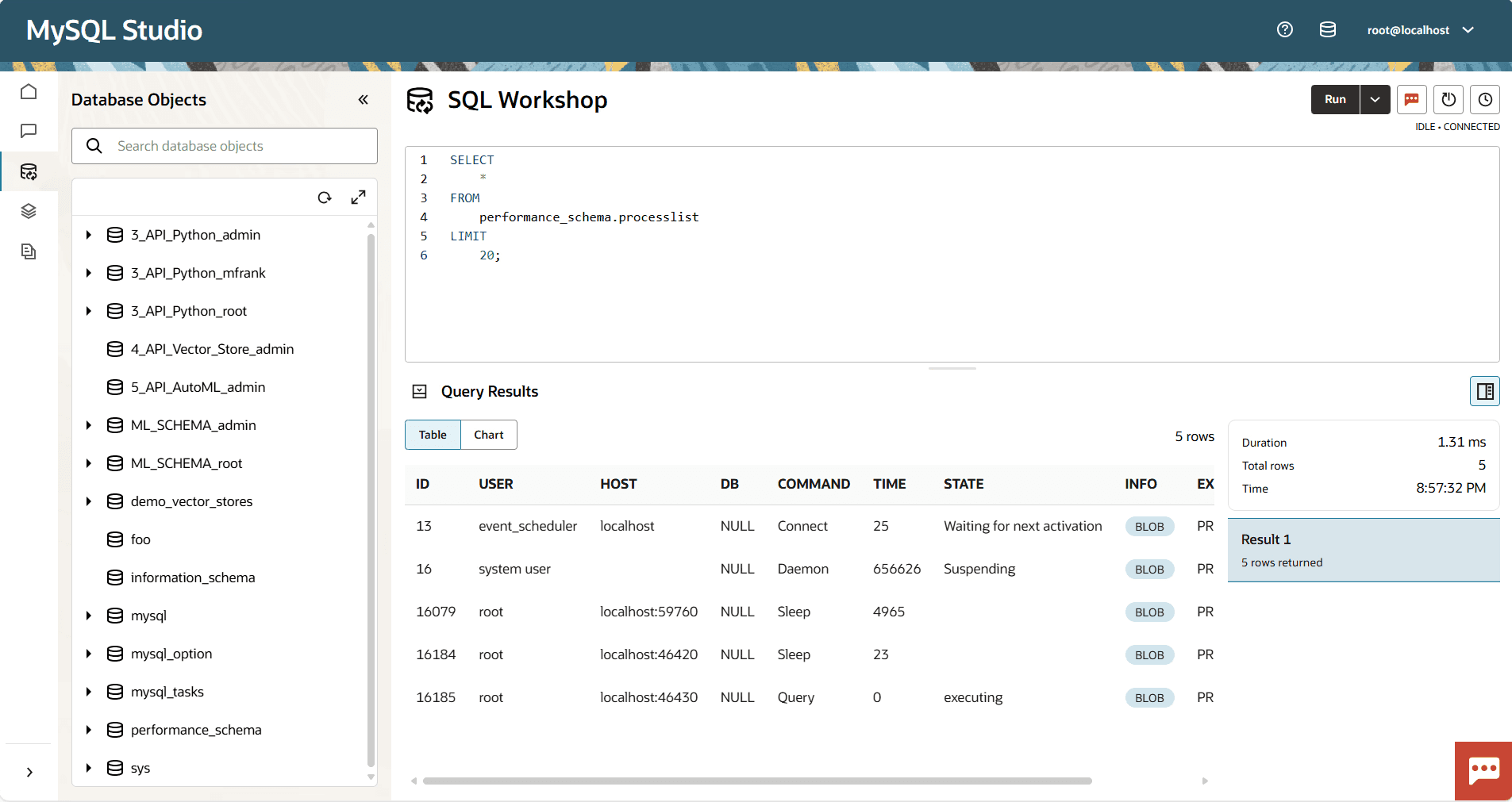 MySQL Studio is Oracle’s new integrated platform that unifies MySQL’s core capabilities with built-in AI to make data exploration faster, intuitive, and accessible to more users.